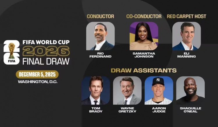 2026年寰宇杯抽签庆典将于2025年12月5日在华盛顿特区约翰·F·肯尼迪扮演艺术中心举行。