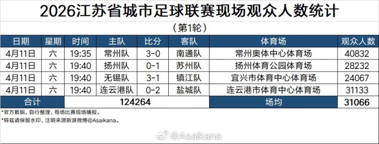 “苏超”职业联赛 首轮现场观赛人群 人数统计:常州主场作战 观赛人群 人数超4万人