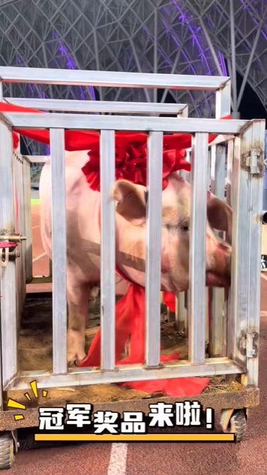 五华县体裁局复兴县超冠军奖励一头猪:寓意钞票满满