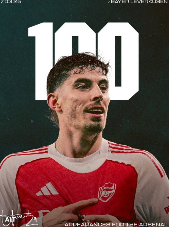 哈弗茨迎阿森纳生涯100次出场里程碑,贡献32球14助攻球射门足球计分数