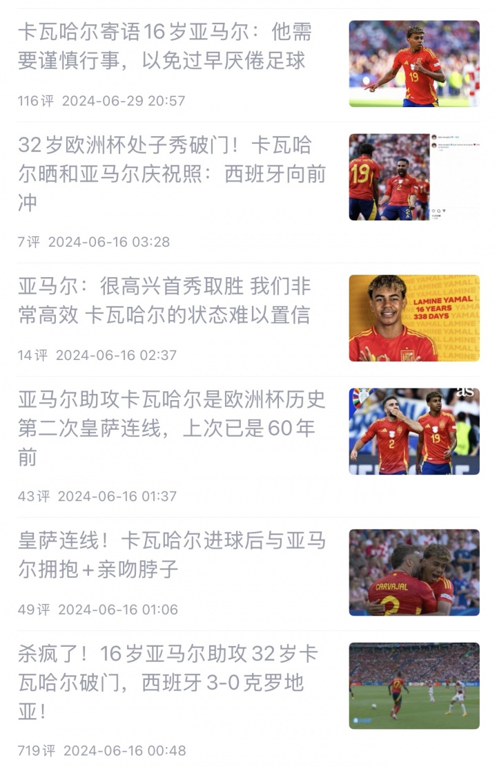 不外此前有报说念称,2024年欧洲杯之后,亚马尔热心了卡瓦哈尔。2024年欧洲杯亚马尔和卡瓦哈尔有好多互动,卡瓦哈尔屡次荧惑亚马尔,后者在前者碰到重伤的时辰也通过社媒奉上祈福。