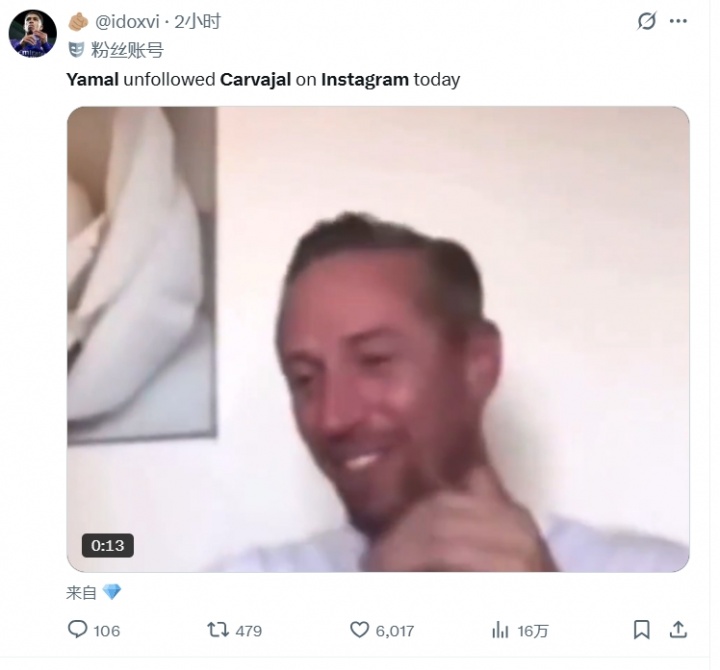 球迷发文热议亚马尔取关卡瓦哈尔,当今两东说念主确乎莫得相互热心