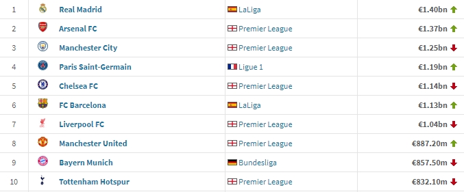阿森纳今夏已进行了苏维门迪、埃泽、约克雷斯等多笔分量引援。据德转统计,阿森纳全队身价当今已达到13.7亿欧,仅次于14亿欧的皇马位居寰球第二。