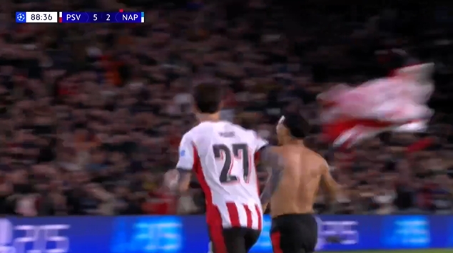 10月22日讯 欧冠联赛阶段第2轮那不勒斯客战埃因霍温,德里欧破门后脱衣猖獗庆祝 十东说念主那不勒斯2-6落伍埃因霍温!