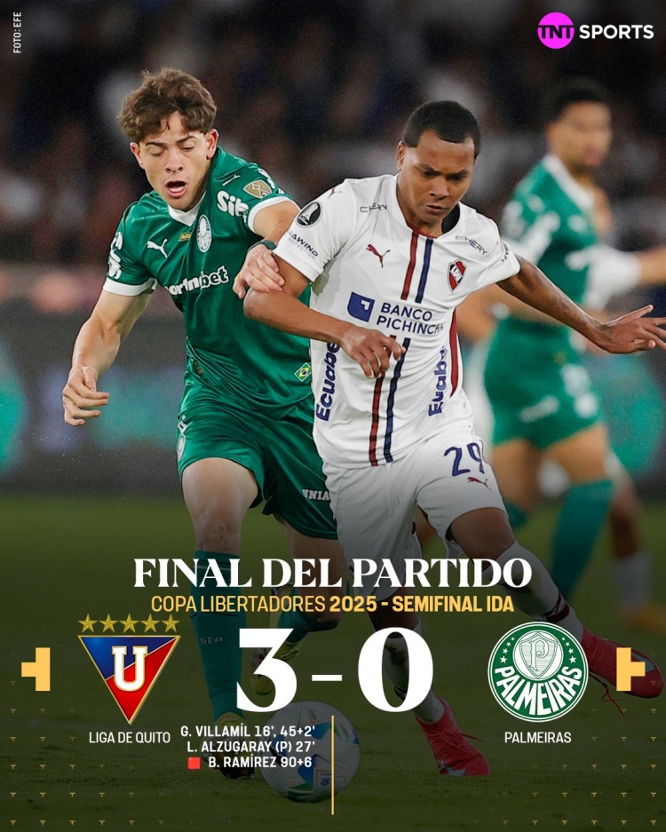 自若者杯半决赛首回合,基多体育大学3-0打败帕尔梅拉斯霸占先机