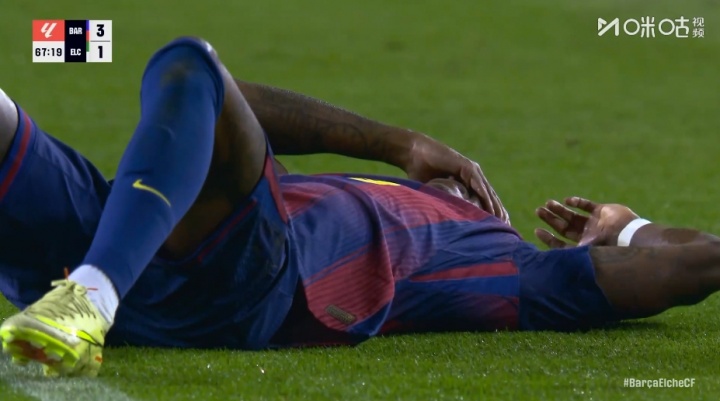 11月03日讯 西甲第11轮巴萨vs埃尔切,比赛第67分钟,拉什福德尝试干扰时与对方防范球员相撞,随后他横祸倒地,但裁判并未吹罚犯规。