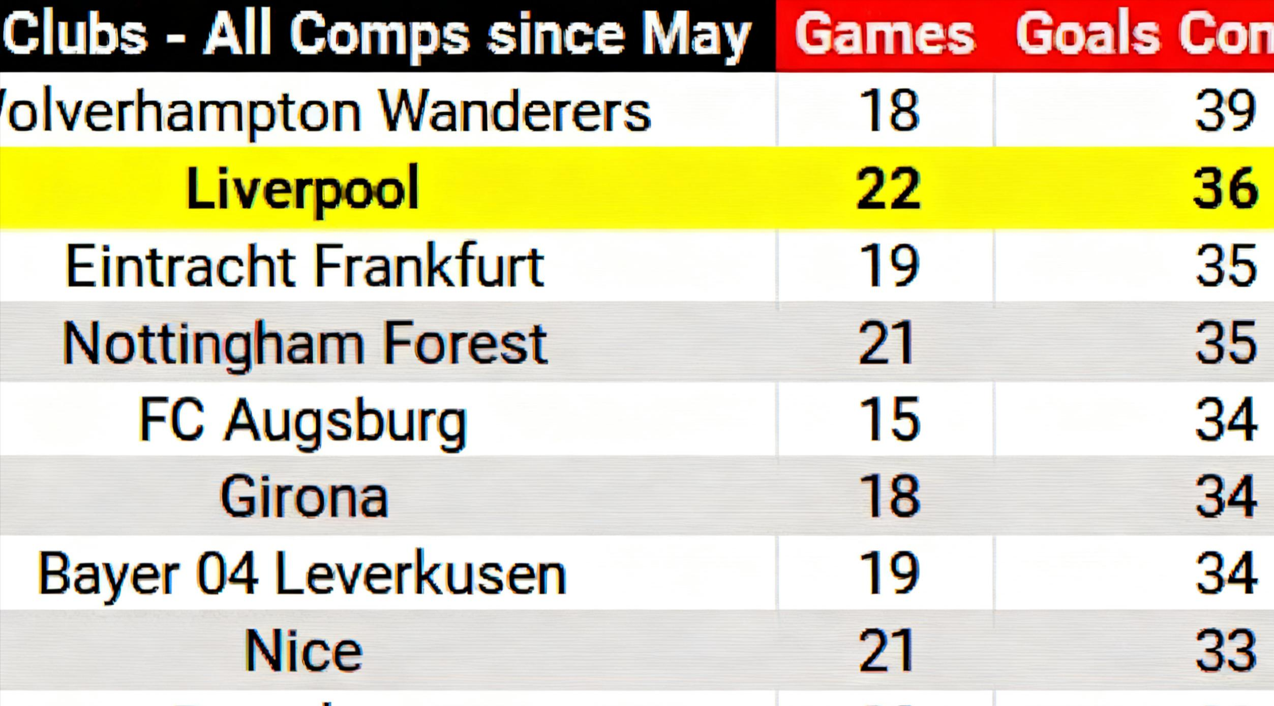 值得强调的是,如下表所示,夙昔六个月内跨总共赛事,唯有深陷保级泥潭的狼队比利物浦失球更多——这解说赤军的病灶并非本赛季才倏得爆发。