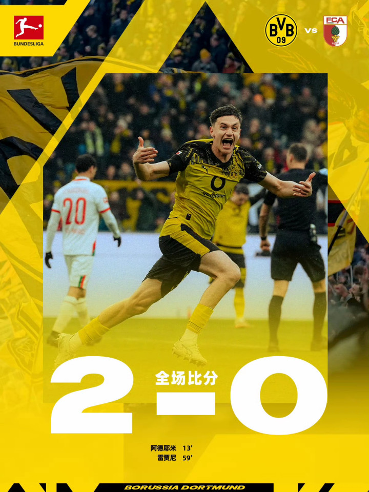 多特蒙德2-0奥格斯堡