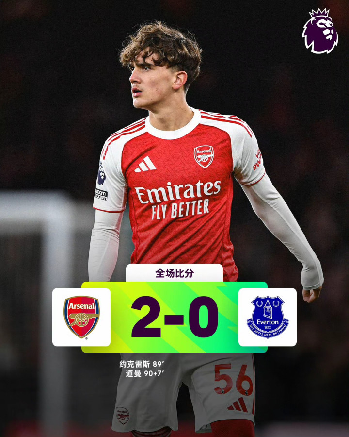 阿森纳2-0埃弗顿