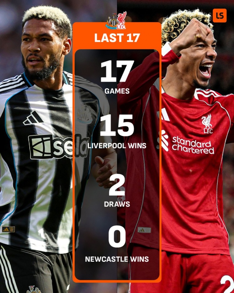 据媒体统计,利物浦近17次英超对阵纽卡保抓不败,战绩15胜2平。