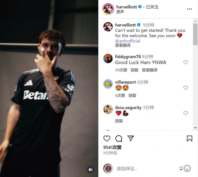 埃利奥特晒加盟维拉视频:迫不足待思要启动,感谢公共的宽宥