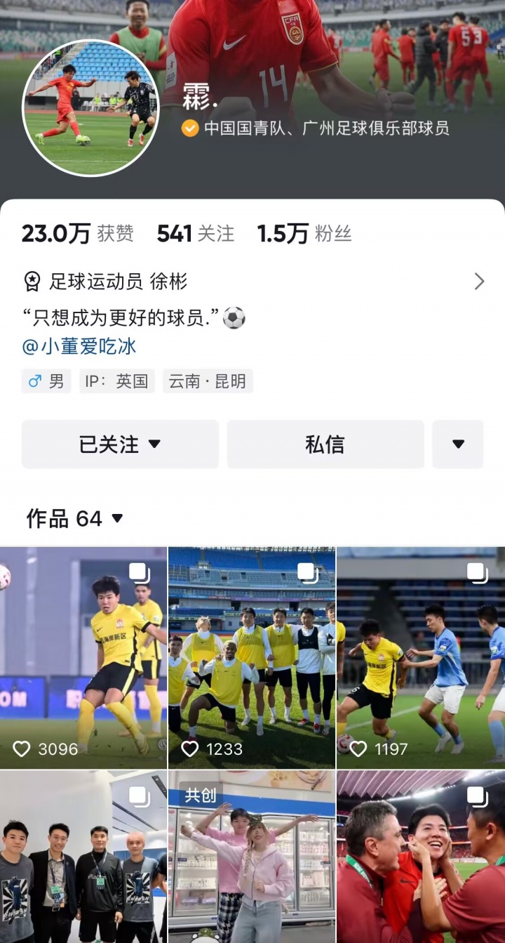 开启留洋!徐彬与女友IP均显现英国,此前已和英超狼队战役近半年