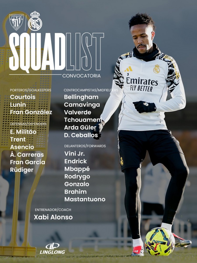 12月3日讯 北京时期未来凌晨2点,西甲第19轮皇马将客场对阵毕尔巴鄂竞技,皇马公布了此役球队大名单。