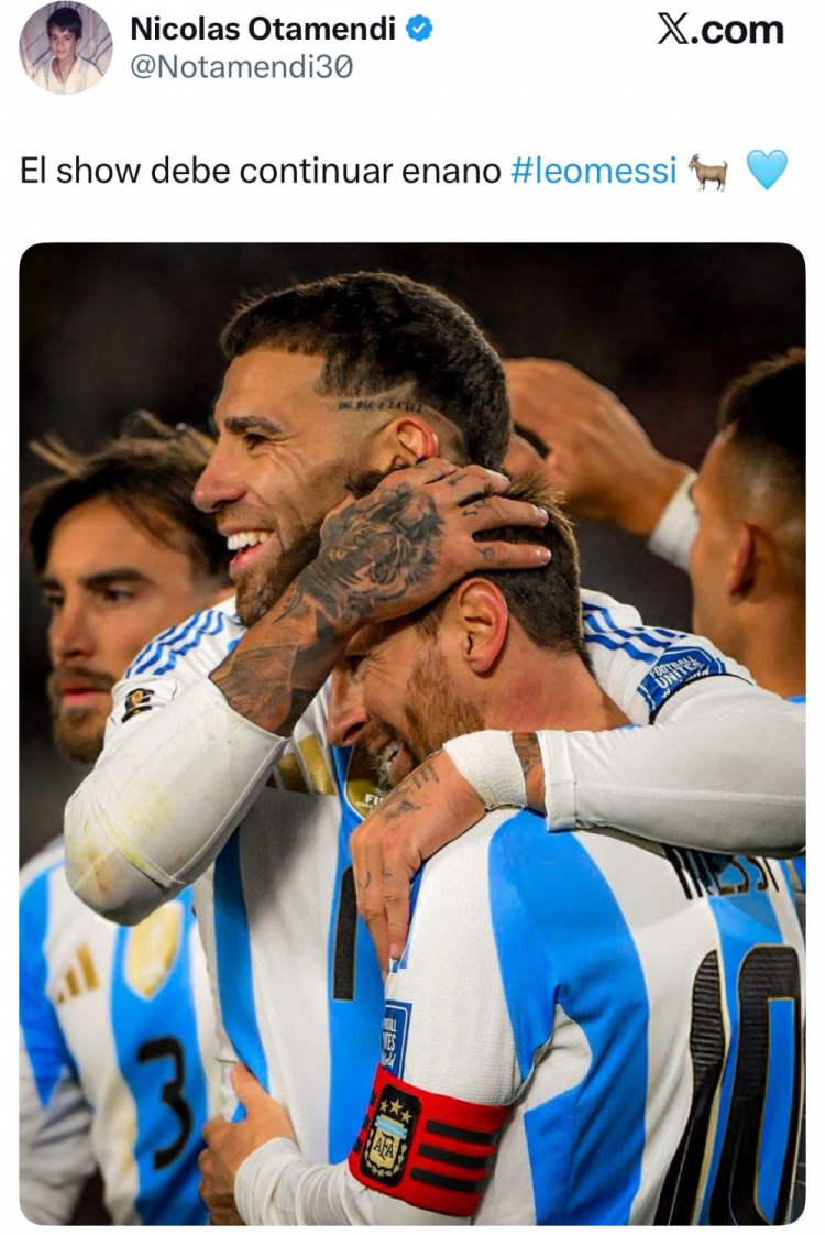 赛后奥塔门迪更新社媒,晒出了我方和梅西相拥庆祝的像片,并配文写说念:“让你精彩纷呈的献技连接吧,GOAT。”